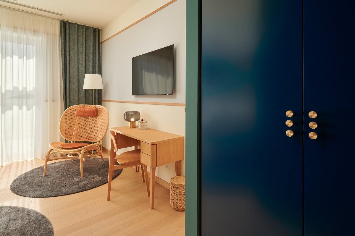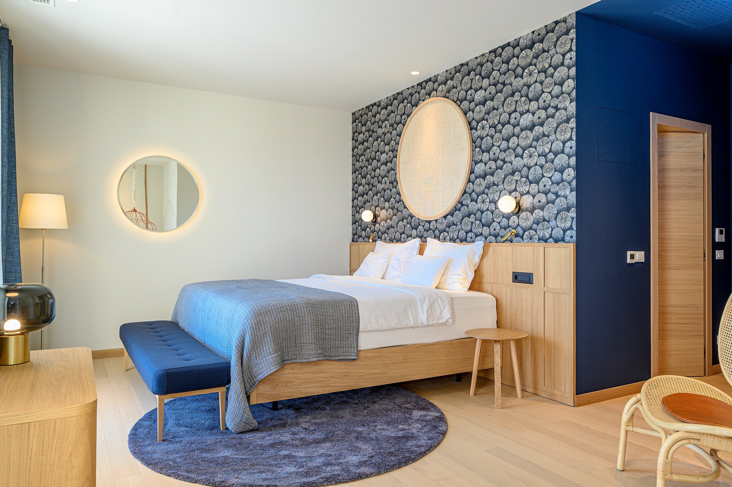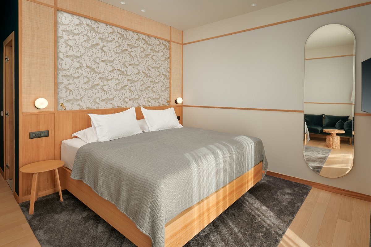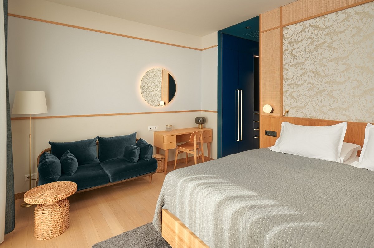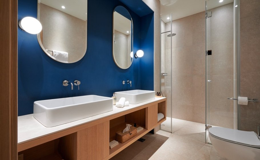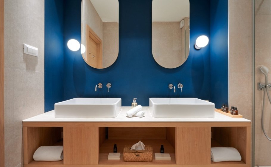 On the first floor of Hermes Blue, there are 4 bedrooms with king size beds (200x210cm). All bedrooms have en-suite bathrooms with walk-in showers, hairdryers, and all the necessary amenities. All have direct access to the sea view balcony, a 55-inch smart TV, cabled and Wi-Fi Internet access. Also, each room has its own wardrobe with an integrated safe. Two of the mentioned king size beds can be converted into twin beds (100x210m each), according to your personal needs and wishes.