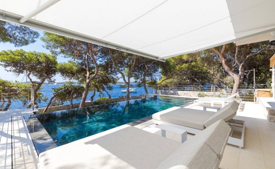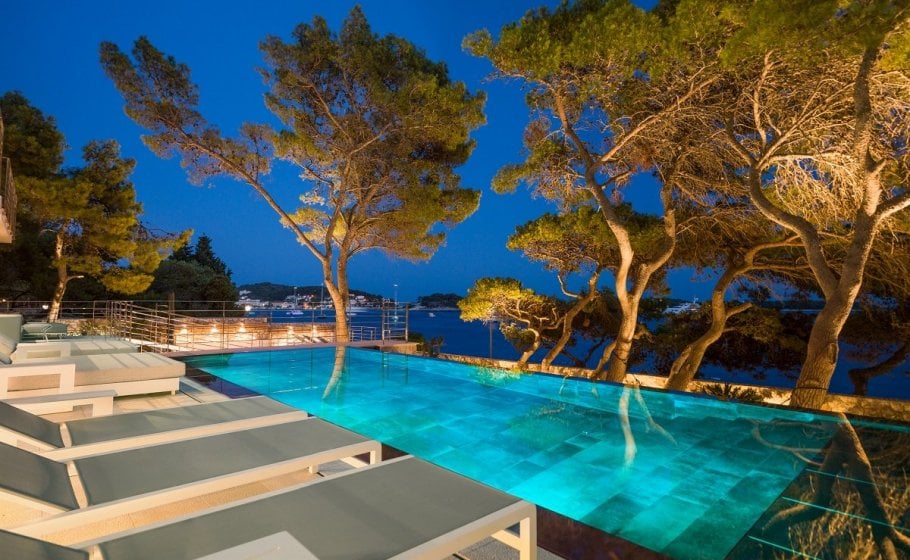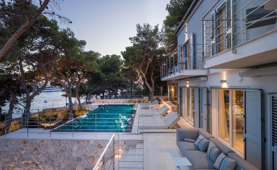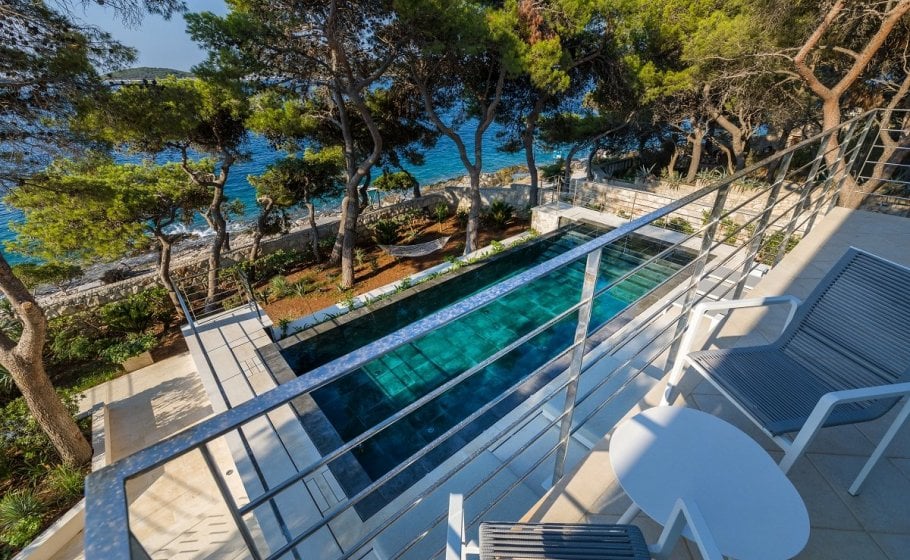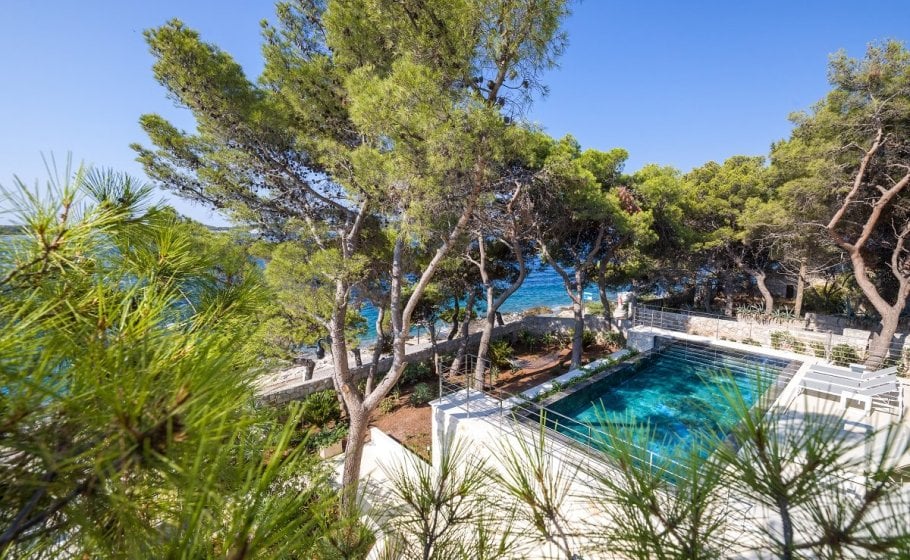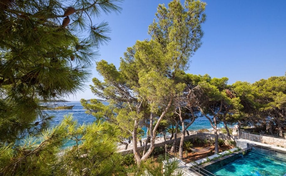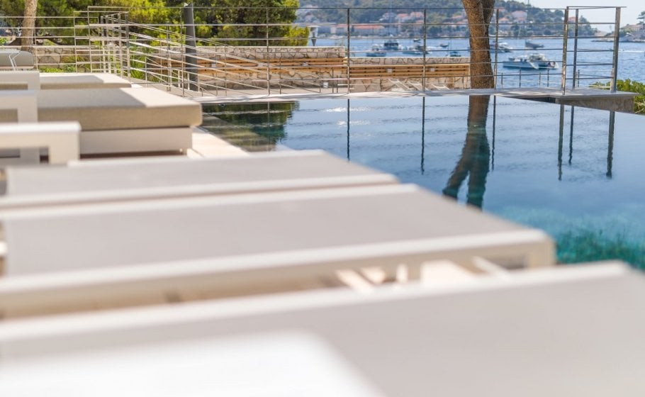 To the left of the sundeck, you’ll see a small, beautiful Mediterranean garden with pine trees that have a long tradition and history, but also a new infinity pool that has yet to write its modern history. The pool is 35m2 in size, and again we won’t be exaggerating when we say that you’ll be hard pressed to swim in a pool on Hvar that has a more exclusive and prestigious location than this one.