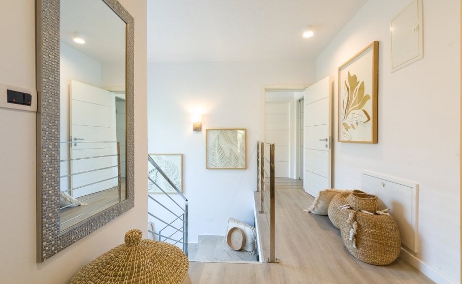 Villa Nereus has an interior area of 350m2 plus a pergola of an additional 50m2. The villa is located on a property of 900m2. There is a total of nine bedrooms spanning across the three upper floors of the villa, and the lower ground floor of the house has a separate entrance and another bedroom with an en-suite bathroom.