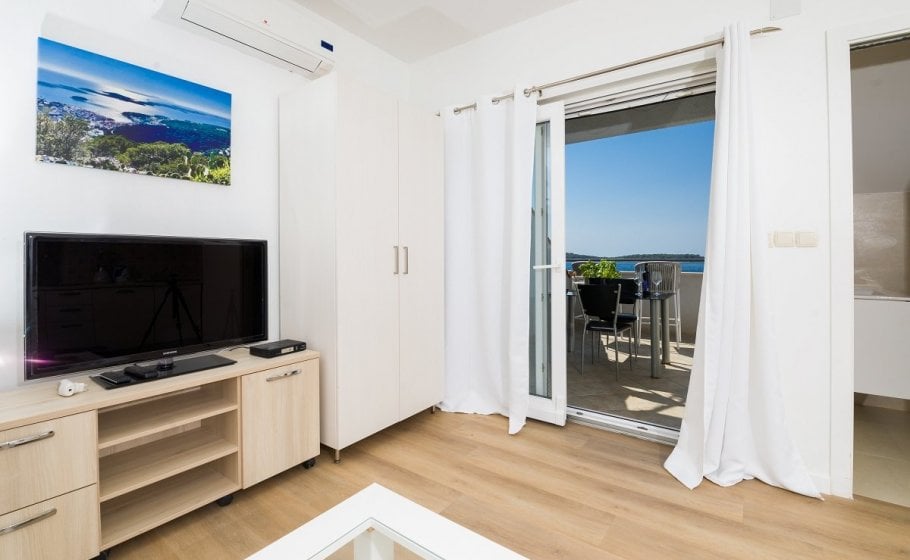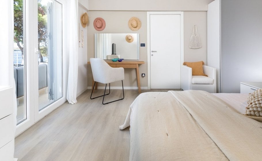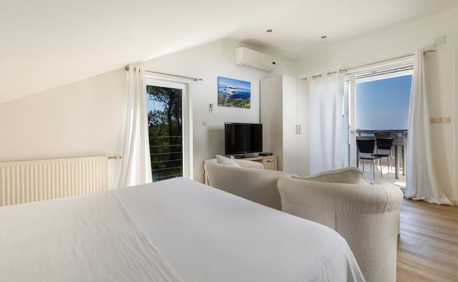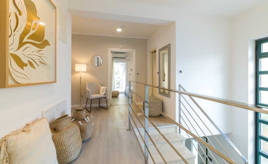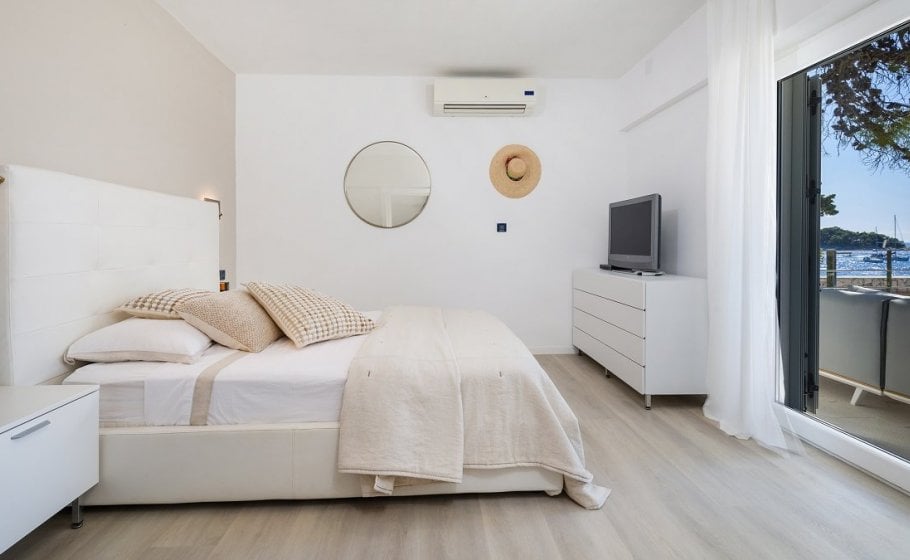 On the ground floor of the villa, there is a separate fully equipped kitchen and a spacious living room with a dining room of 42m2 and a large glass door that gives the space a lot of light and adds a feeling of freshness despite the high summer temperatures. The ground floor has two bedrooms of 12m2 and 20m2 with respective en-suite bathrooms. The living room and dining room, as well as one bedroom, open onto the main terrace of approximately 30m2, which you’ve just crossed from the outside. There is also a wonderfully designed pool (no, not all pools are beautiful), but also perfectly comfortable and beautiful sun loungers alongside it. The view is still magical, enchanting, and strangely addictive. You should dose all that beauty carefully, keeping in mind that there are other bookings after yours and that you can't stay in the villa forever, even though you might feel a strong urge to do so... Instead, here's your chance to be in the here and now and enjoy every moment in life. And yours is, obviously, amazing.