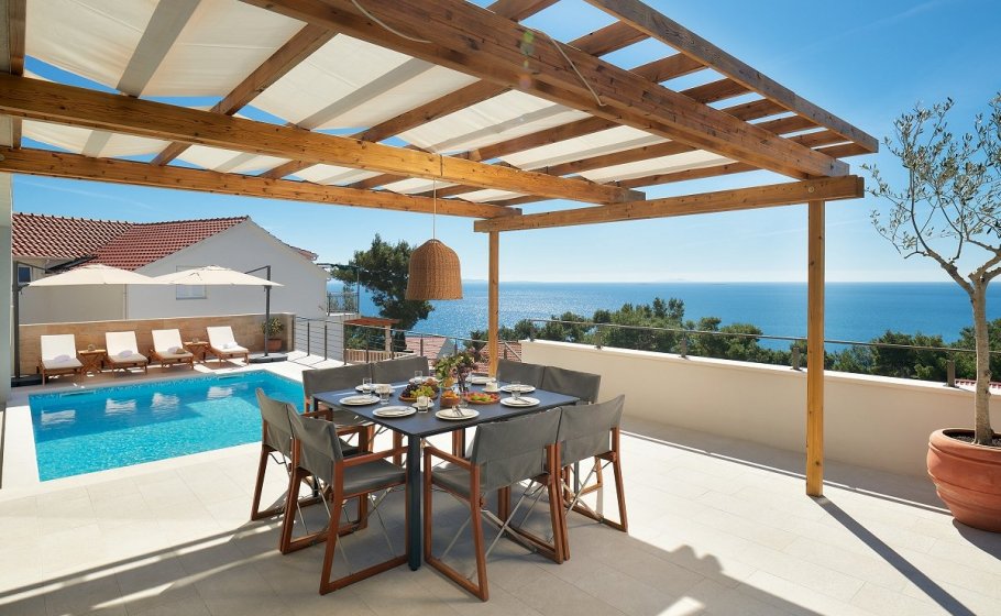 The view from the terrace and the pool faces the southwest; while you are chilling on the terrace of the villa, swimming in the pool or treating your palate to fine meals that can be prepared by our top chef, you will also be enjoying the gorgeous view of the blue sea and the green hues of the pines.