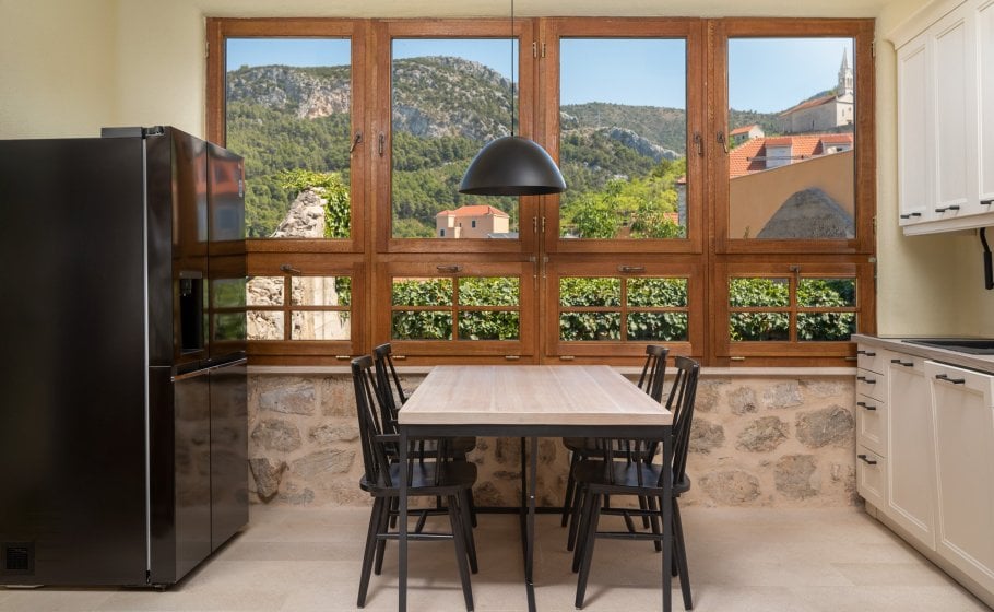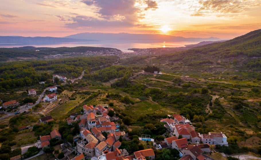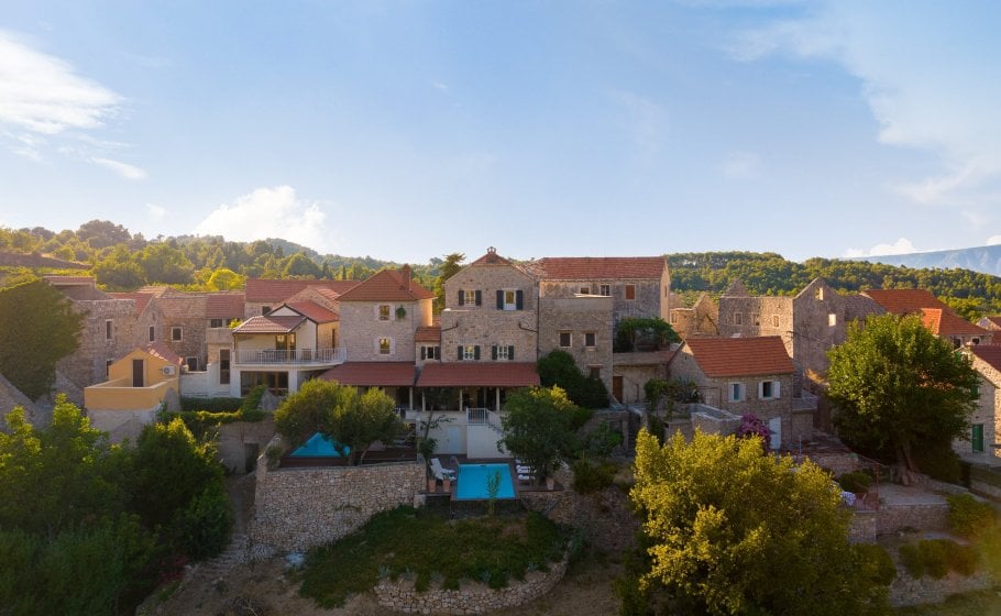 This complex is a wonderful symbiosis of history, tradition, luxury, romance, silence, and Zen. The complex is located on a village hill, surrounded by vineyards and olive groves and only a 3 or 4-minute drive to the first town, Jelsa, and the sea, which you can see from all three villas.