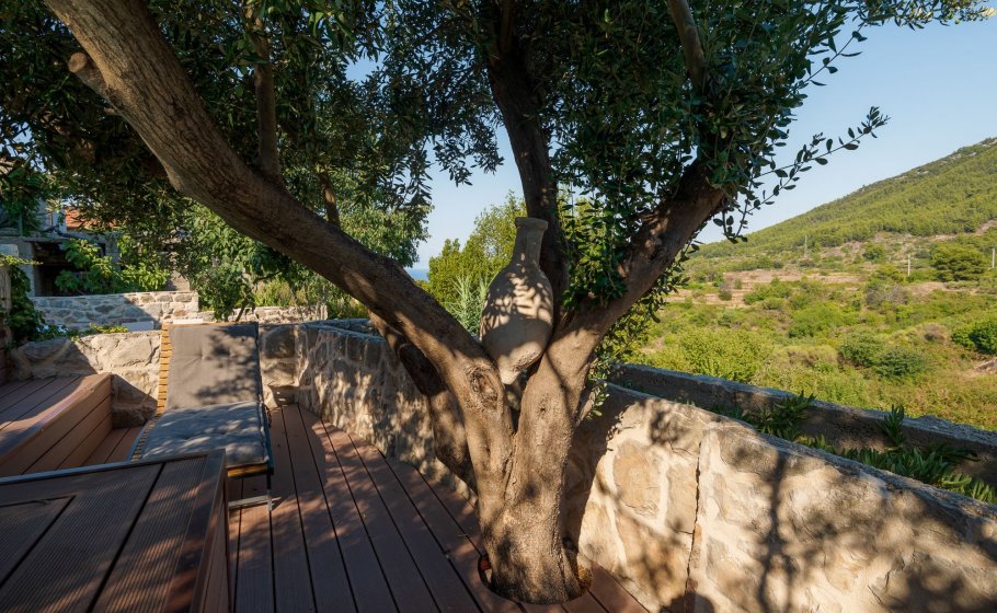 Once upon a time there were three stone houses in a picturesque village on a magical island. The island was called Hvar, the village was called Pitve, and the second of the three houses was called Typhon B and had a swimming pool, a wonderful view, and a beautiful olive tree.